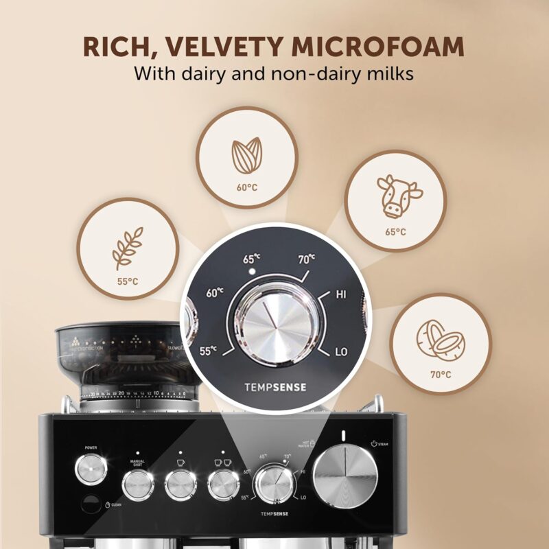 - Milk Frother with TempSense Steam Wand – For silky smooth foam
