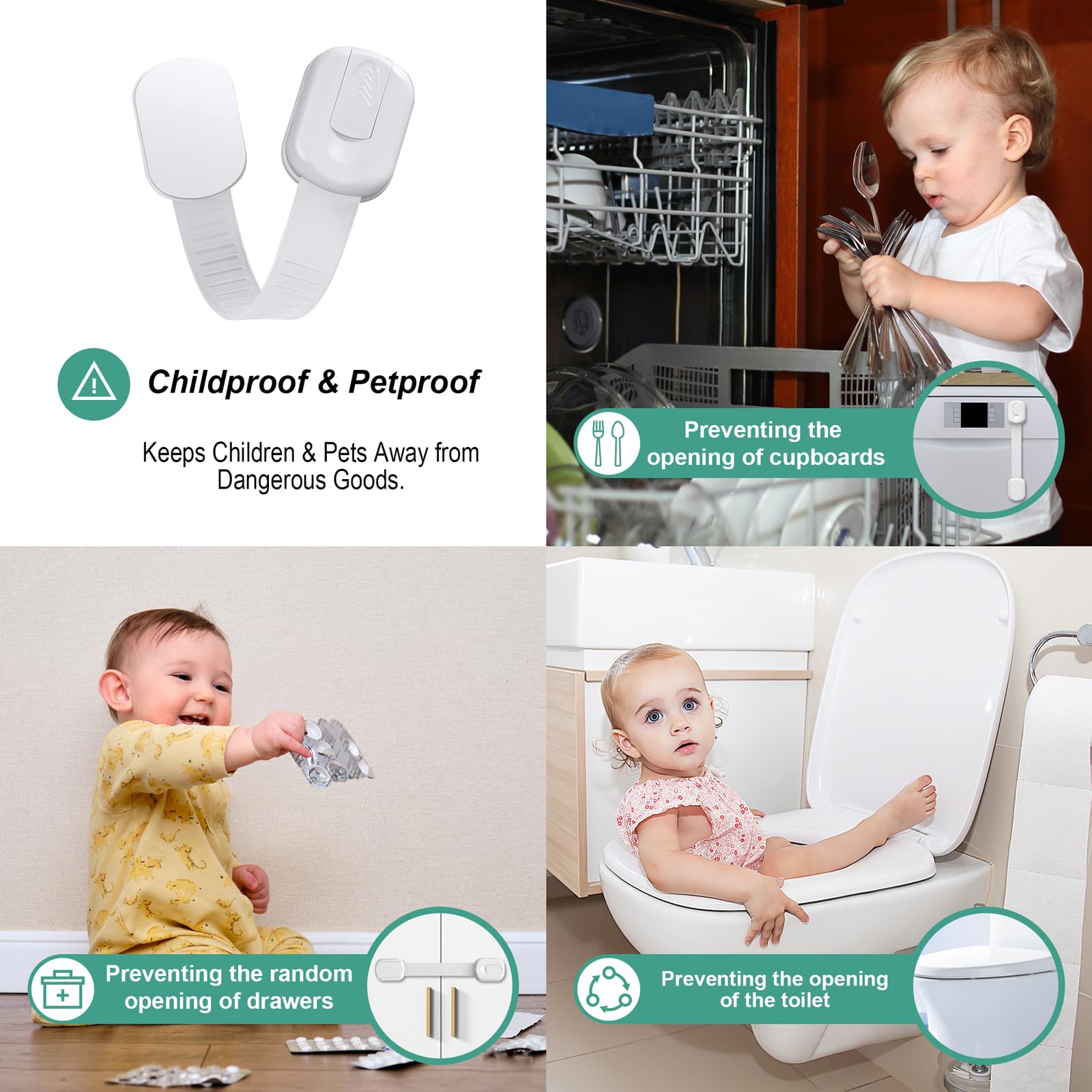 - Multi-purpose: Make sure your baby or toddler is safe by securing cabinets, appliances, drawers, refrigerator, bin, toilet seat and more. With these kids locks, you can also keep your things well organized, because your curious child can’t reach them!