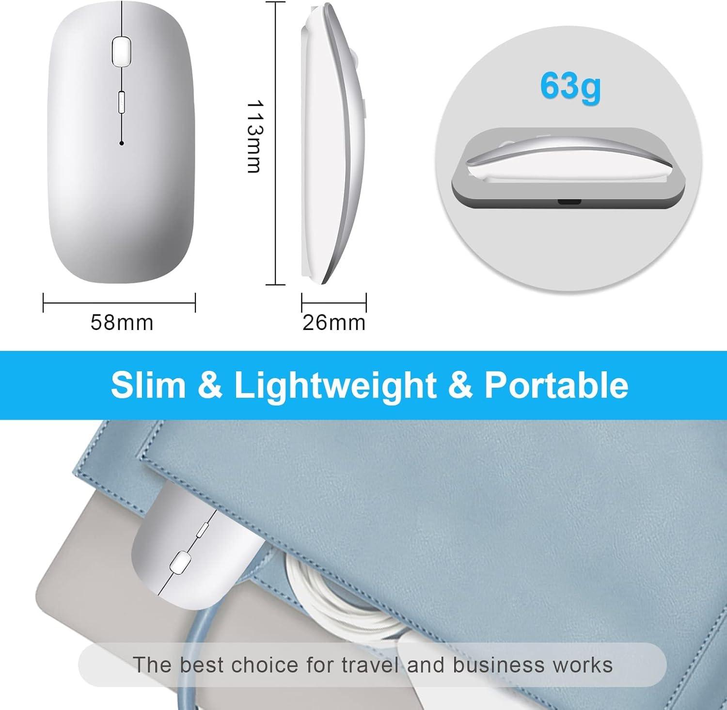 - [Skin-friendly and Comfortable] Mouse surface coating anti-fingerprint treatment gives you a skin-like touch and provides maximum grip and comfort for your hand. Durable non-slip rubber scroll wheel ensures that your hand won’t slip off when scrolling. Provides all-day comfort for work and play, the portability and pocket size is perfect for on-the-go or travelling.