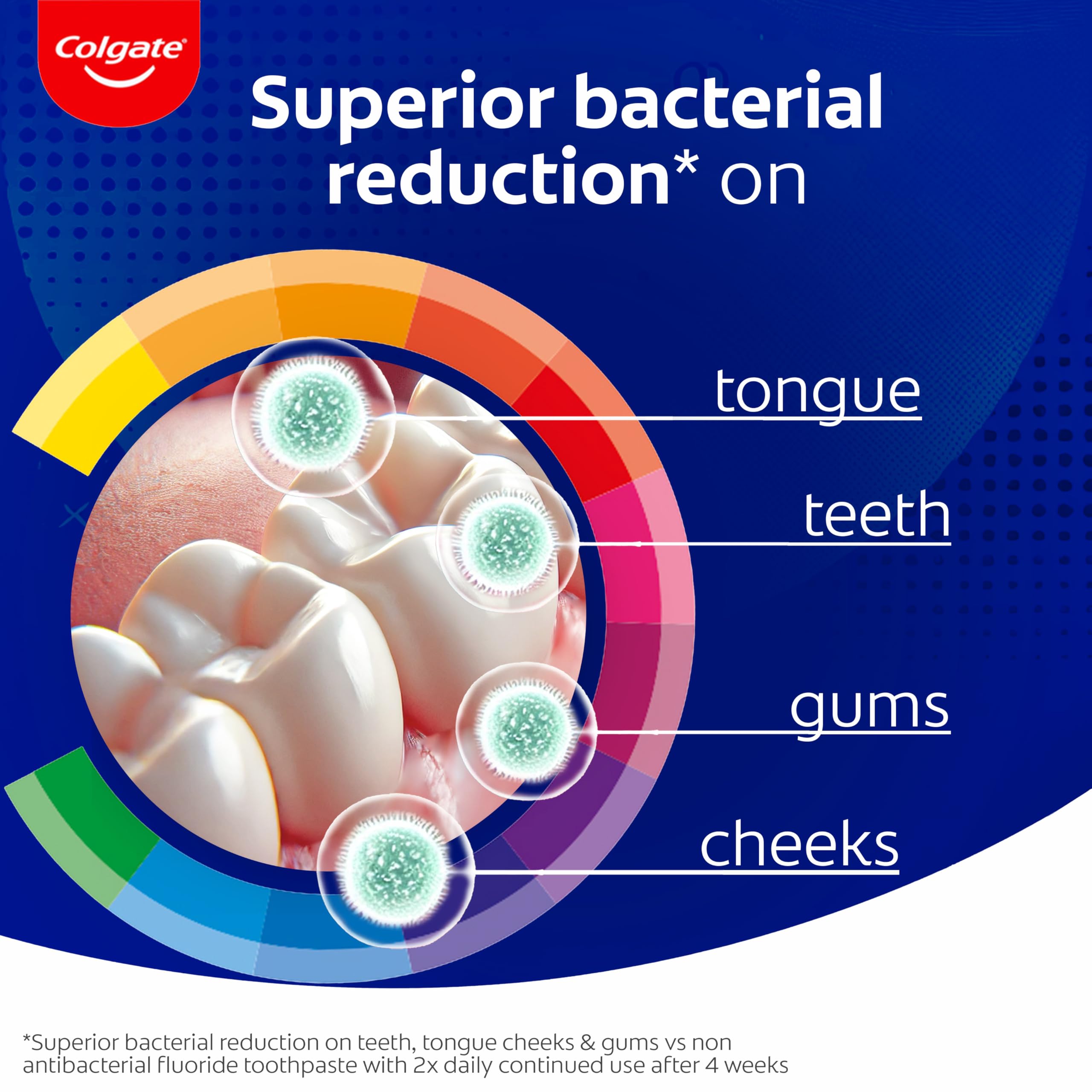 - SUPERIOR BACTERIAL REDUCTION*: Benefit from superior bacterial reduction on teeth, tongue, cheeks and gums*, giving you a wholemouth clean that you can count on every day