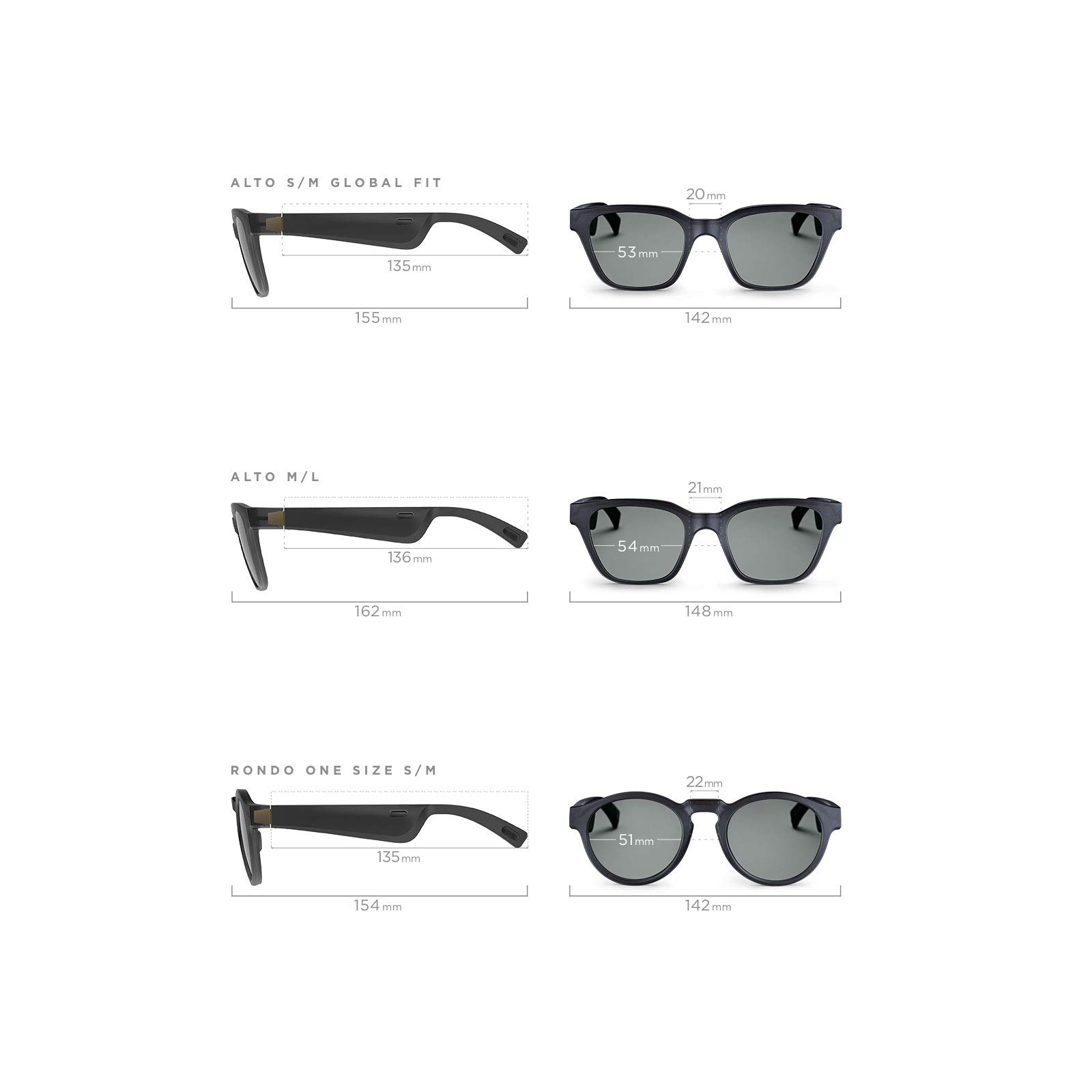 - With their classic angular shape and commanding lenses, Bose Frames Alto offer a new perspective on the most iconic silhouette in history for sunglasses. Available in S/M and M/L