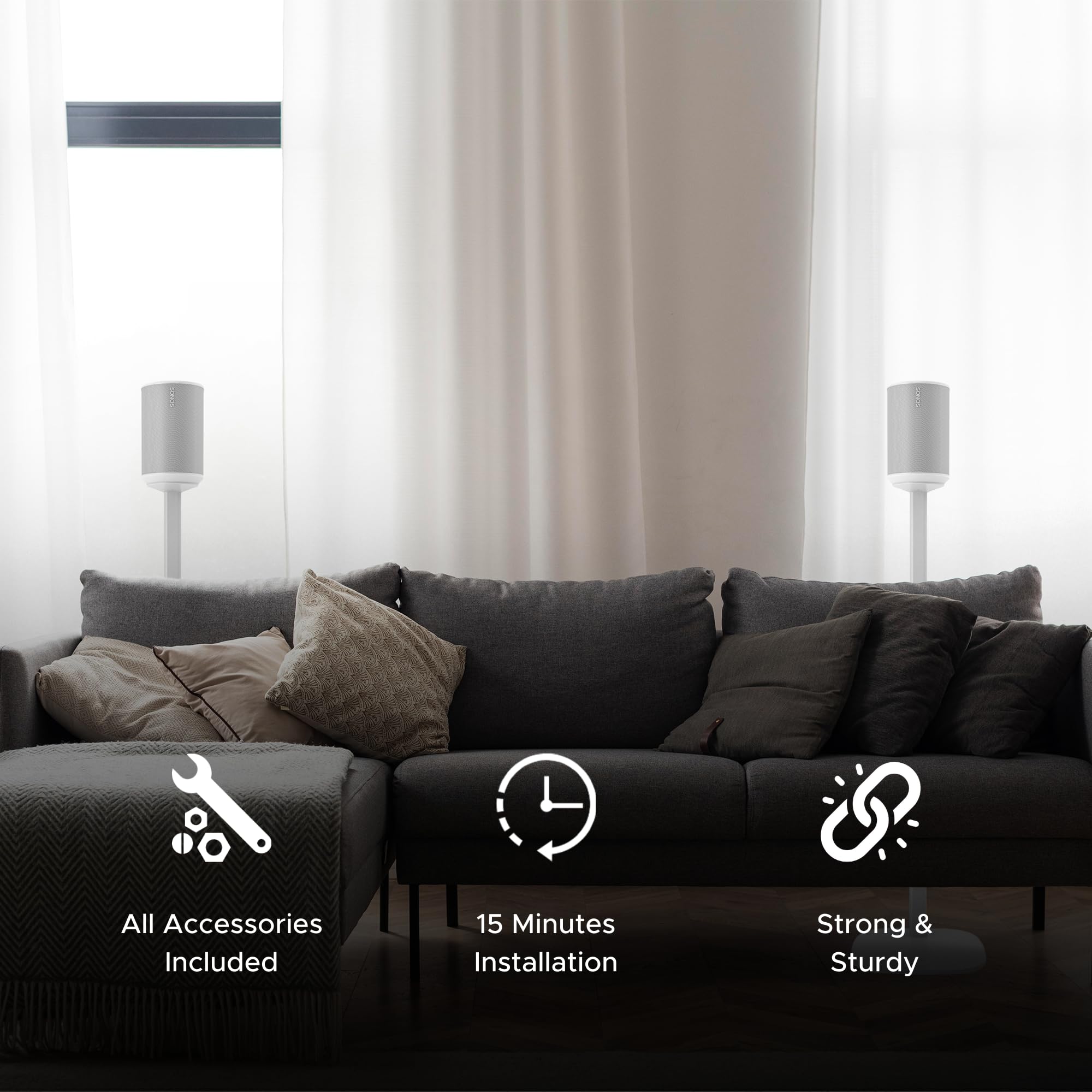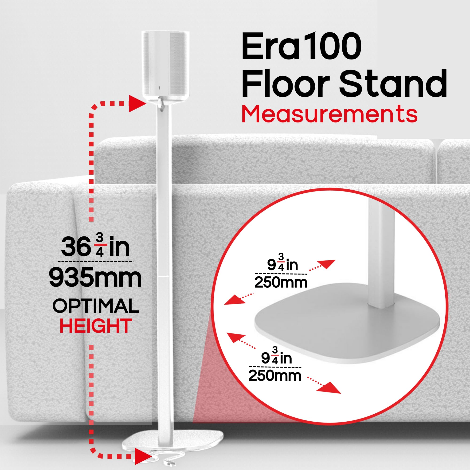 - EXPERTLY DESIGNED FOR OPTIMAL HEIGHT: Elevate your Sonos ERA100 with our floor stand to the ideal height of approximately one meter (36 3/4 inches), perfectly positioning the speaker above your sofa. This height aligns the ERA100’s sound output with ear level for an immersive audio experience.