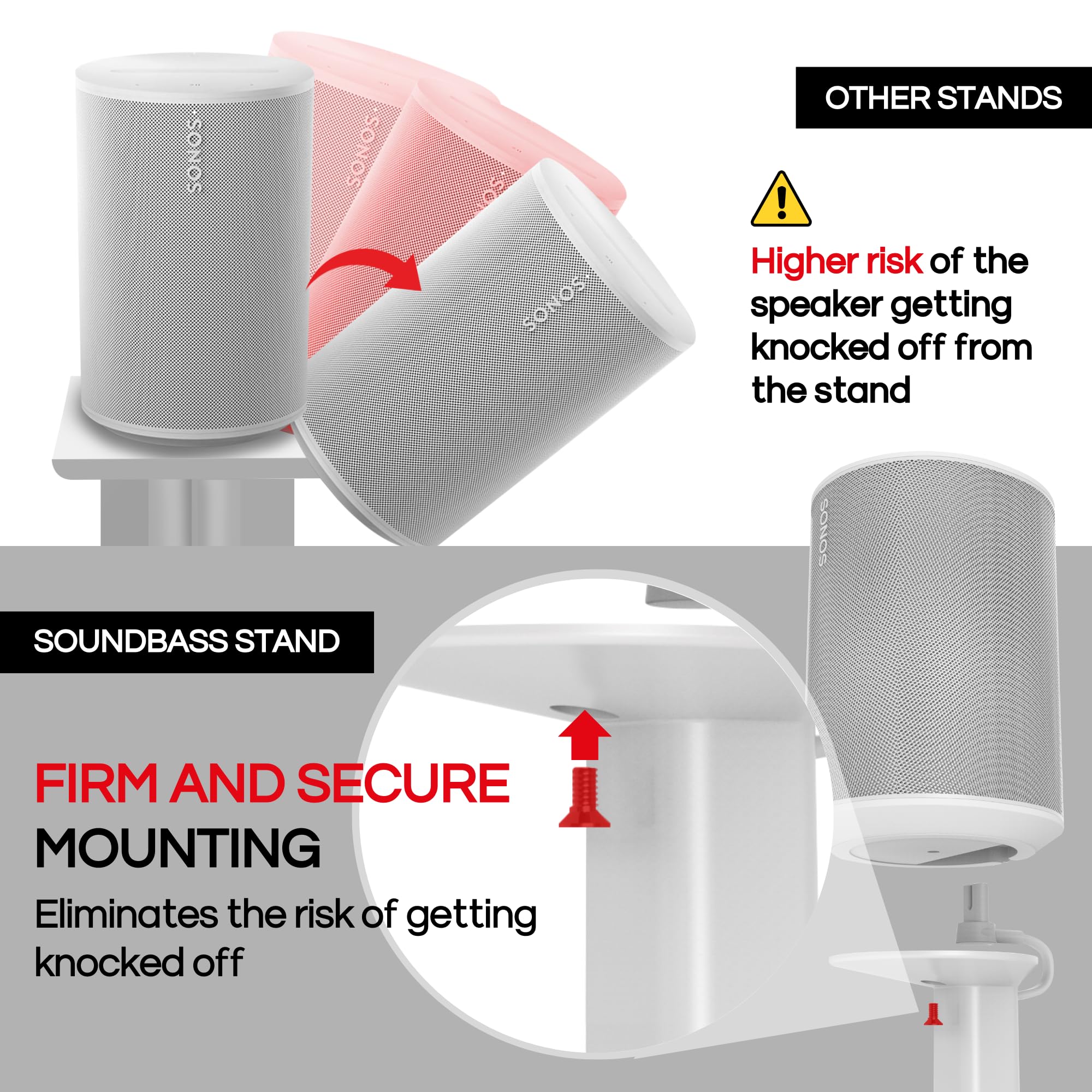 - DUAL-COMPATIBILITY WITH SONOS SPEAKERS: Our floor stands are thoughtfully designed to support both the Sonos One and the latest ERA100 models. This feature ensures long-term usability and adaptability, making our stands a valuable addition to your evolving audio system.