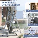 - Sturdy Aluminum Ladder: The safety step ladder is constructed from super strong, lightweight aerospace-grade aluminum, easy to carry with its net weight of only 6.7 kg. The top pedal measures 30.5 x 18 cm, its wide, non-slip steps give you unmatched comfort and stability