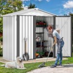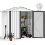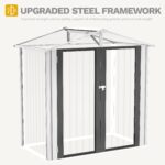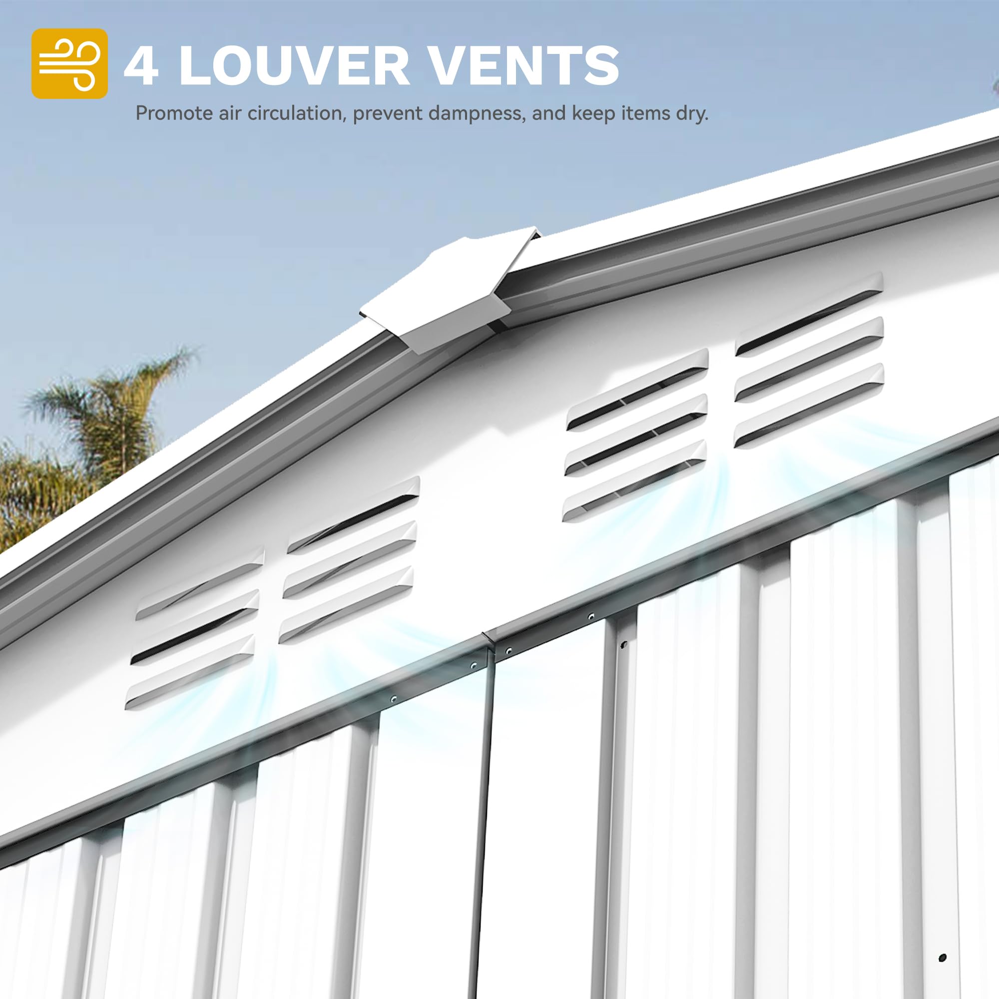 - DURABILITY FOR ALL SEASONS – The bike storage shed is constructed with thick galvanized steel and a robust frame, offers exceptional rust resistance. Its overlapping wall panels and sloped roof design prevent rainwater accumulation, ensuring usability throughout the year