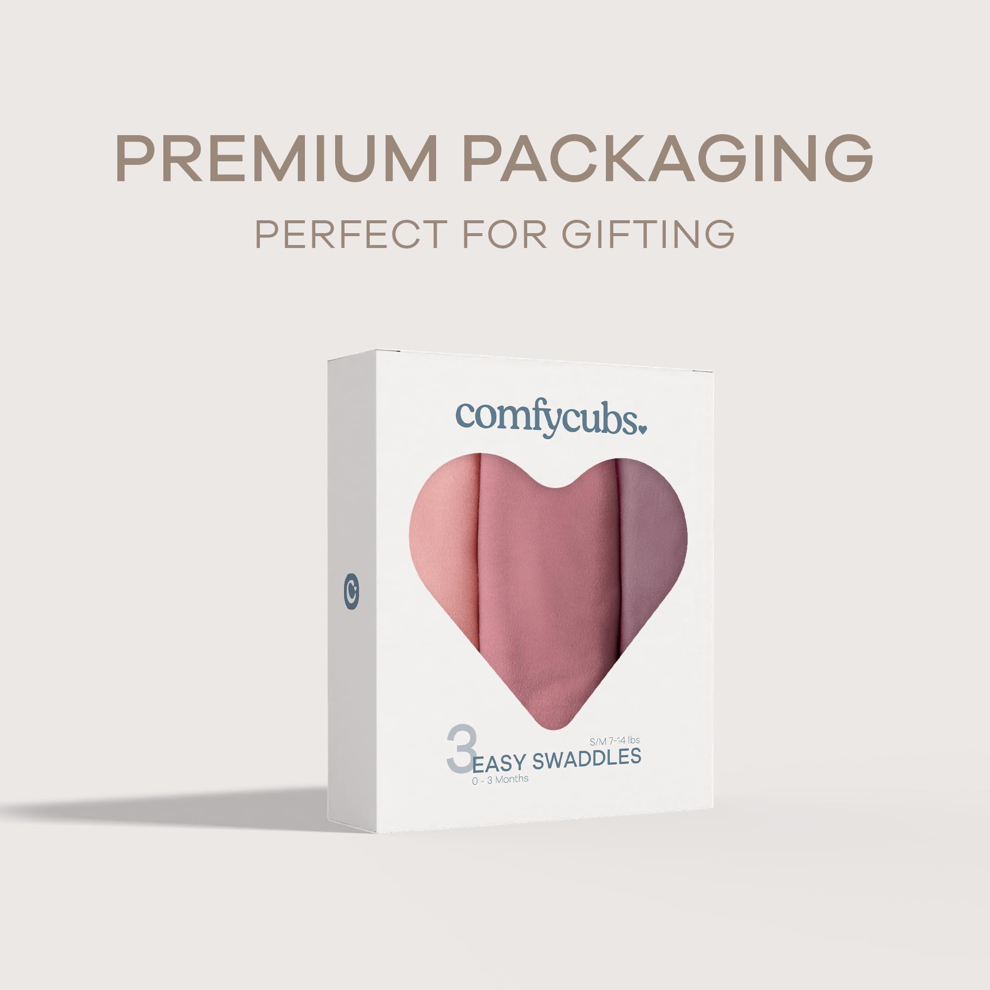 Comfy Cubs Easy Swaddle Blanket, 3 Pack – 100% Cotton Swaddle Set, Small for 0-3 Months Infants, Breathable and Durable Sleep Sack, Newborn Baby Gifts – Blush, Mauve, Mulberry
