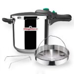 - RESILIENT MATERIALS: The pressure cooker is made of highly durable 18/10 stainless steel, with a 5-layer encapsulated thermo-diffuser base allowing for rapid and uniform heat diffusion, making it suitable for all types of cookers, including induction.
