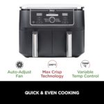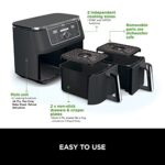Home Home Improvement Kitchen Appliances Ninja Foodi MAX Dual Zone Digital Air Fryer, 2 Drawers, 9.5L, 6-in-1, Uses No Oil, Max Crisp, Roast, Bake, Reheat, Dehydrate, Cook 8 Portions, Non-Stick Dishwasher Safe Baskets, Black AF400UK