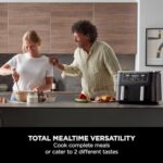 • 2 INDEPENDENT COOKING ZONES: Cook 2 foods, 2 ways, both ready at the same time. Use different functions, times and temps in each drawer to create complete meals in one appliance, or cater to 2 tastes.