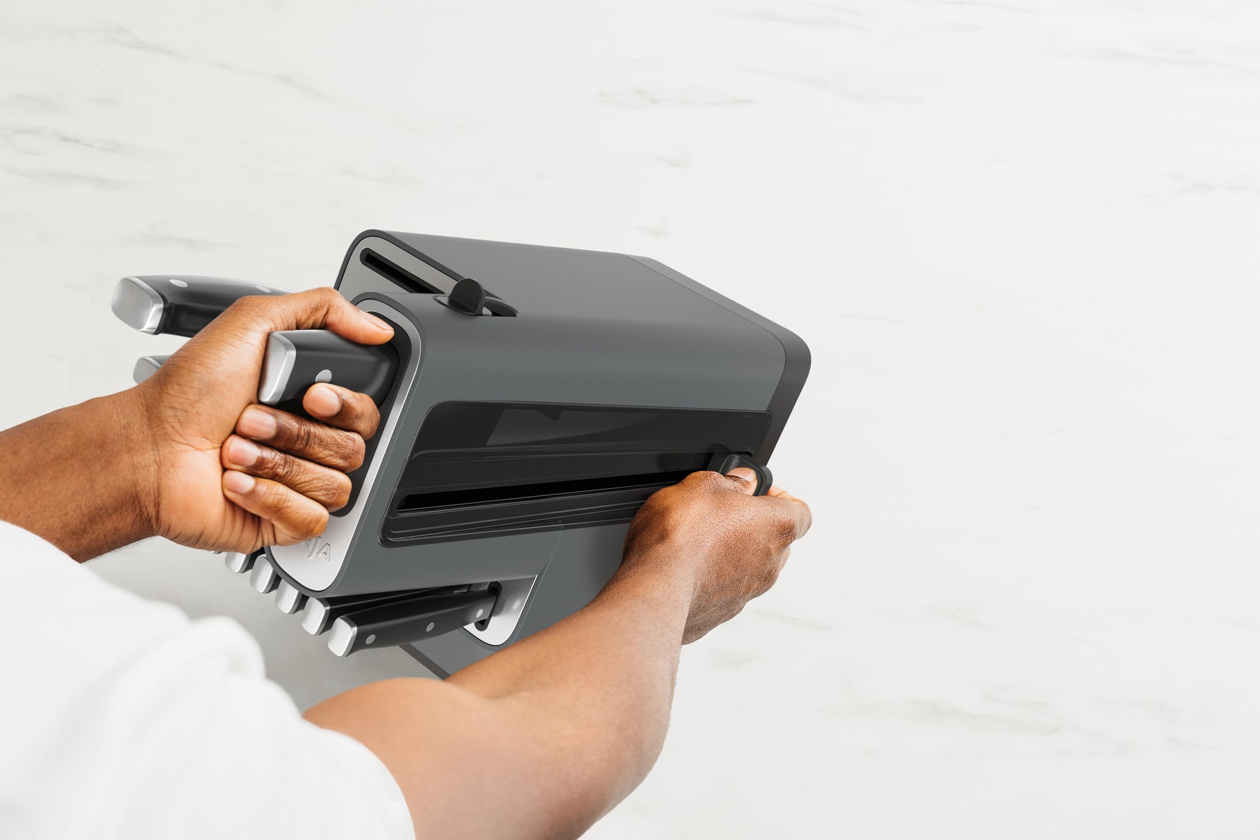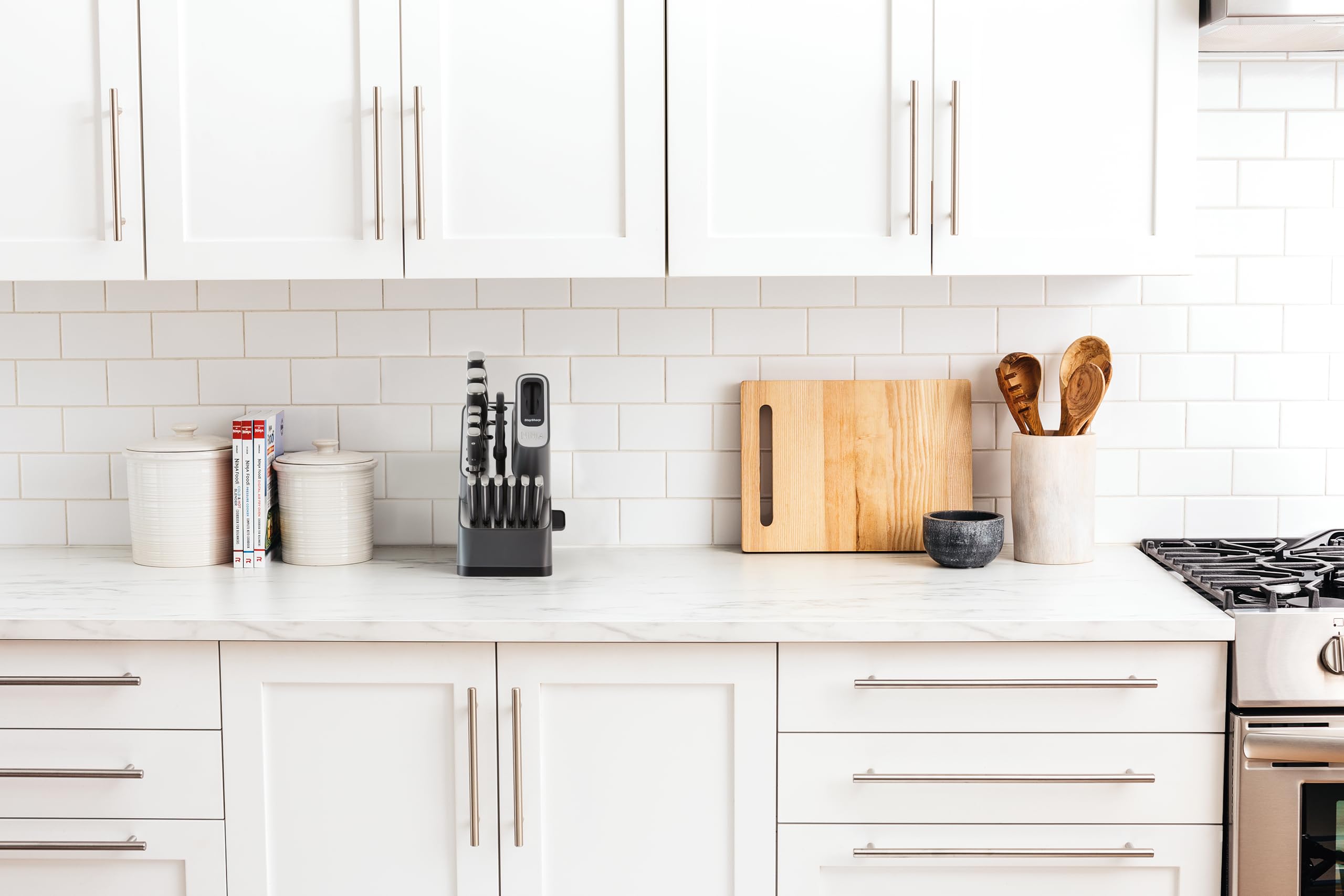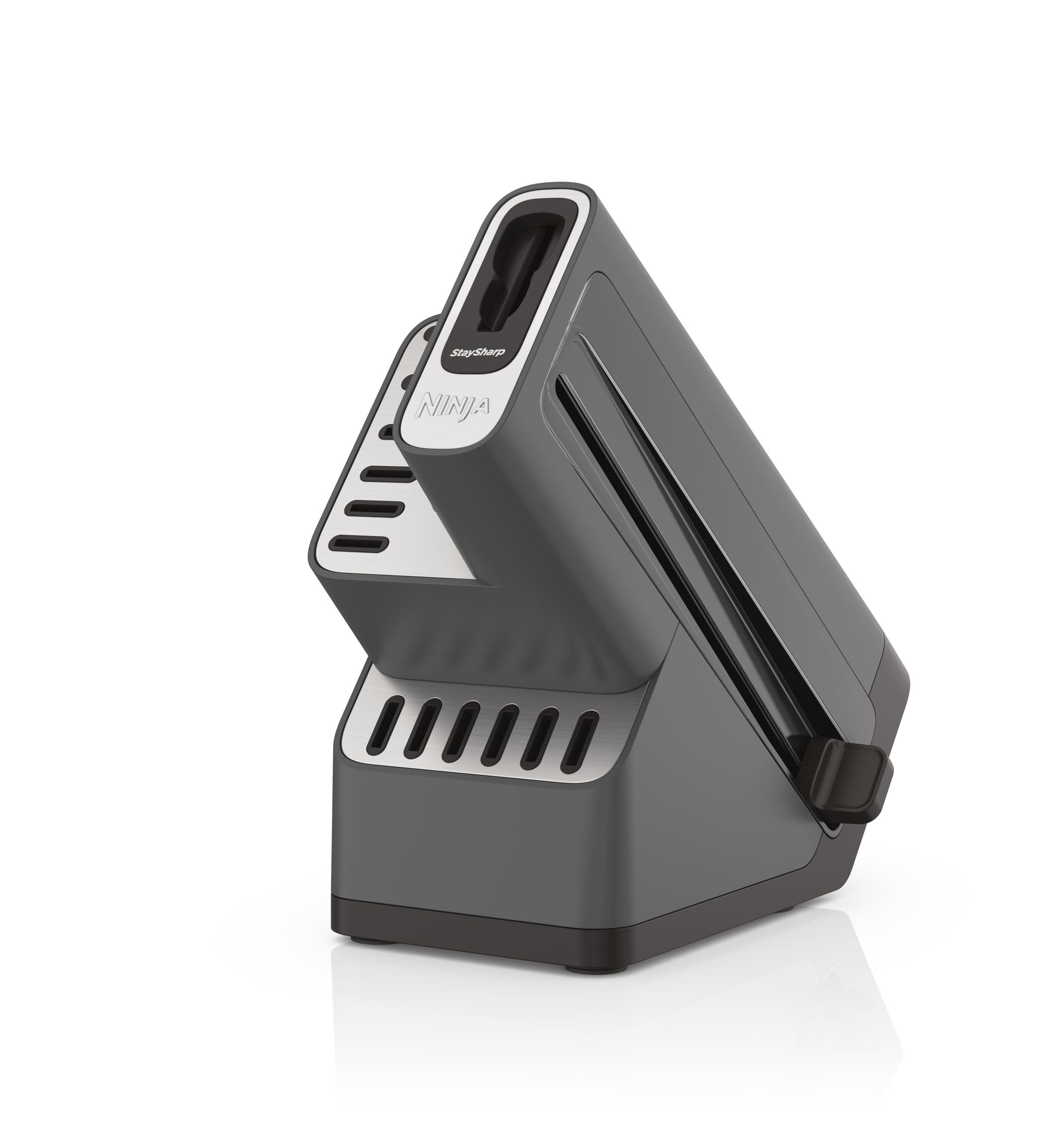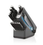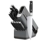 - STARTS SHARP, STAYS SHARP: Maintain incredible sharpness at home with an integrated StaySharp knife sharpener conveniently built into the storage knife block. Simply lock a blade into the sharpener to restore the blade’s sharp edge with a few swipes of the lever.