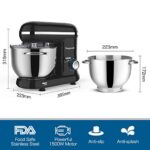 - 【Tilt-head & Anti-slip Design】: Tilt-head cake mixer not only allows clear access to the mixer bowl and attached beater but also easy to install and remove the stainless bowl and 3 attachments. 4 strong silicone suction cups on the base help secure it to your counter and prevent “walking” during operation. The food mixer has a stainless steel decoration belt and blue LED light as a power indicator. Definitely one of the best appliances in your kitchen.