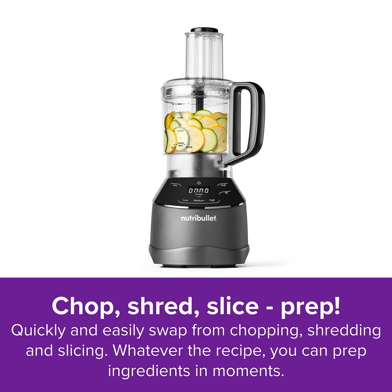 - WHAT’S INCLUDED: The nutribullet Triple Prep System includes a 1500W Motor Base, 7-Cup Processing Work Bowl with Dual Size Food Pusher, 1.6L Blending Pitcher, 680ml Cup, Easy Twist Power Extractor Blade, Chopping Blade, Slice/Shred Disc, To-Go Lid, Tamper and an Instruction Manual with Recipe Guide.