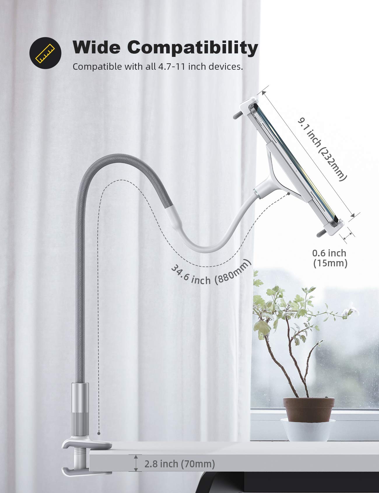 - 【Broad Compatibility】 The in bed ipad holder fits all 4.7~13 inch devices, like 2024 iPad Pro 11/13, 2022 iPad 10.2, iPad air mini 2 3 4 5 6, iPad Pro 9.7 10.5 11 12.9, iPad 10 9 8 7 6 5 4 3 2, iPhone Xs Max XR X 8 7 6 6s Plus, Google Nexus, Switch, etc. Use with a case less than 15 mm thick.