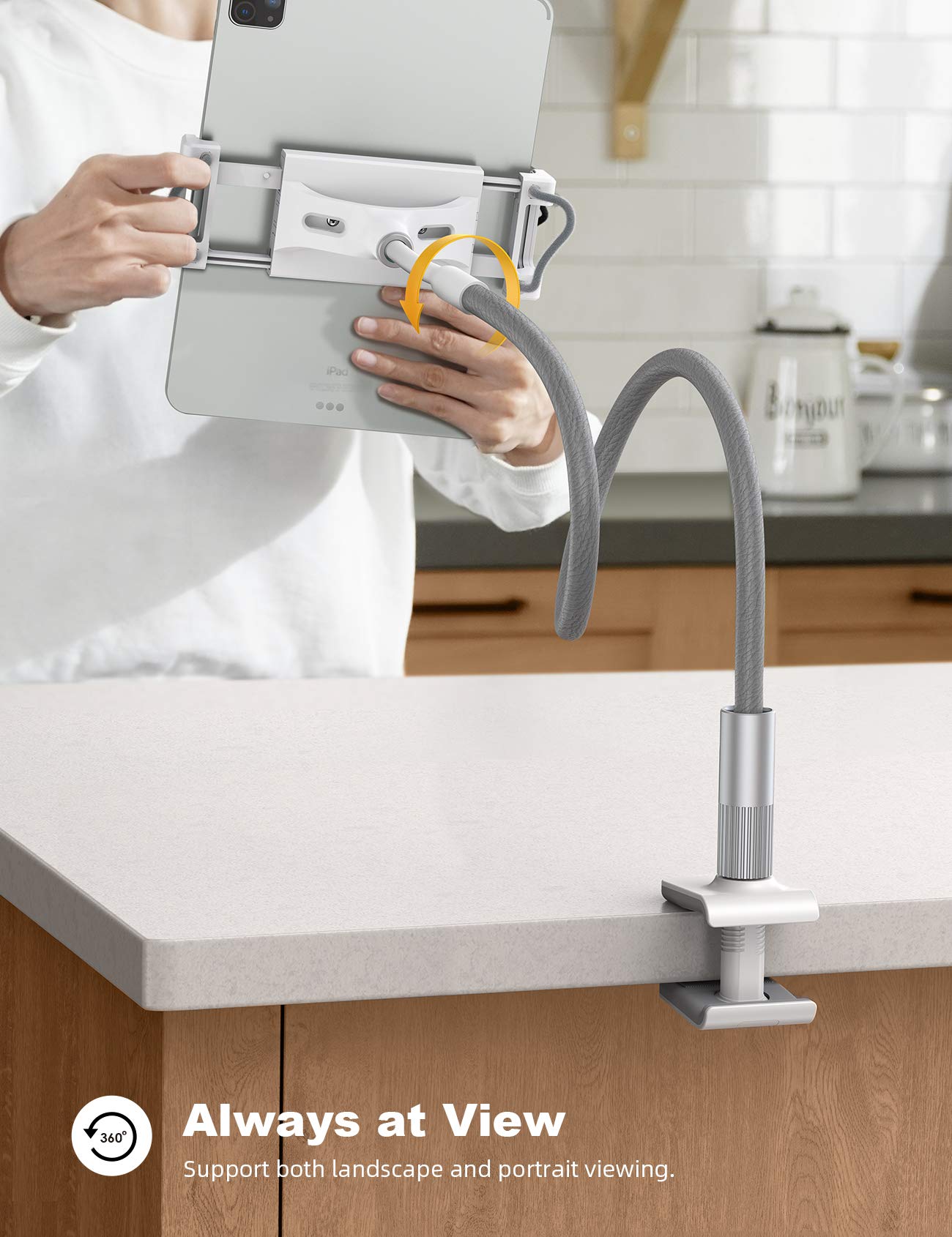- 【What Special?】This iPad Stand is the upgraded version of Lamicall Phone Holder: (1) Thoughtful strings on the top clamp help to easily install or uninstall your ipad. (2) Protective rubber grip in special curved shape to prevent ipad falling out if you set it facing down. (3) The anti-slide rubber pads covering on the base are detachable, which enhances grip force and will Not leave any annoying glue on your table.