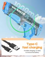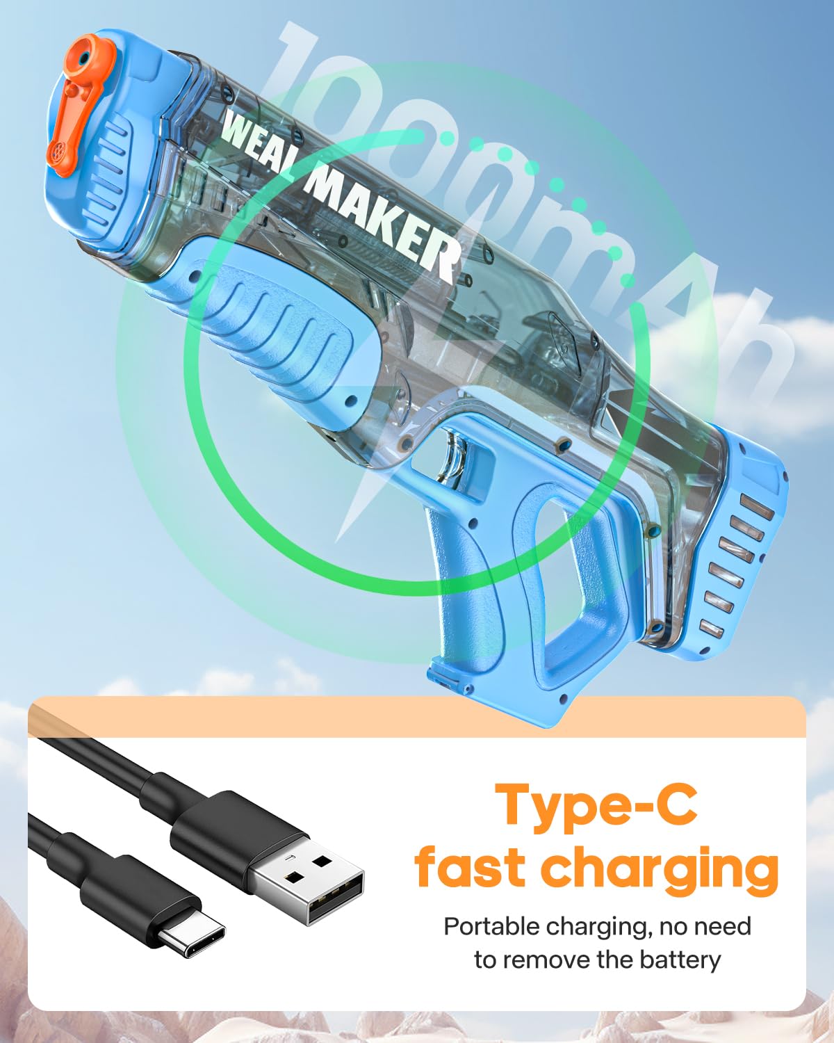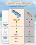 • No Leakage + Large Capacity + Long-lasting Endurance: We have updated the gun head design, it will not leak like other water guns on the market. The water tank capacity is 360ML, and each full of water can fire more than 220 rounds of bullets. After each full charge, it can fire more than 7,000 rounds of bullets. These upgrades ensure you can enjoy longer water fights with friends and family and have more fun!
